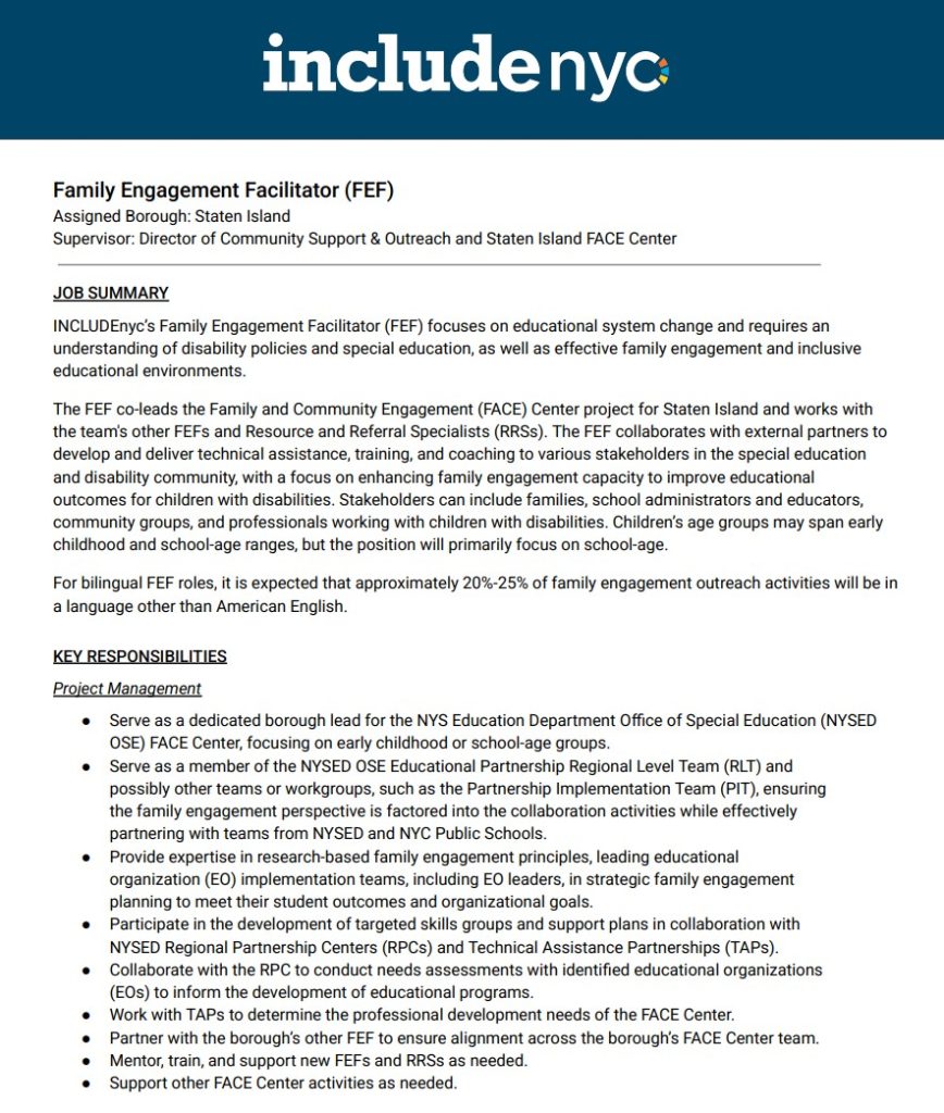 Includenyc Family Engagement Facilitator